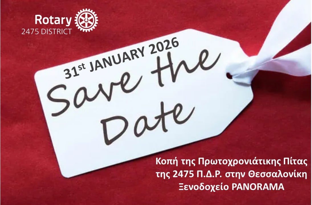 SAVE THE DATE – ΚΟΠΗ ΠΙΤΑΣ 2475 ΠΕΡΙΦΕΡΕΙΑΣ ΔΙΕΘΝΟΥΣ ΡΟΤΑΡΥ