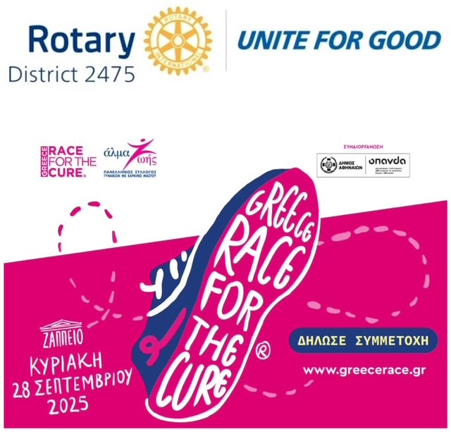 Η 2475 Περιφέρεια Δ.Ρ. συμμετέχει στο Race for the Cure, τη μεγαλύτερη αθλητική διοργάνωση για την υγεία των γυναικών στην Ευρώπη. Μέσα από τον αγώνα αυτό, οργανώσεις και νοσοκομεία για τον καρκίνο του μαστού καταφέρνουν να συγκεντρώσουν πόρους, ενώ παράλληλα ο αγώνας συμβάλει στην ευαισθητοποίηση του κοινού.